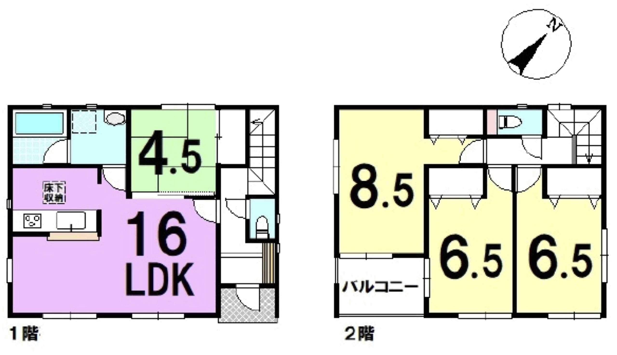 2階:8.5洋・6.5洋・6.5洋・トイレ