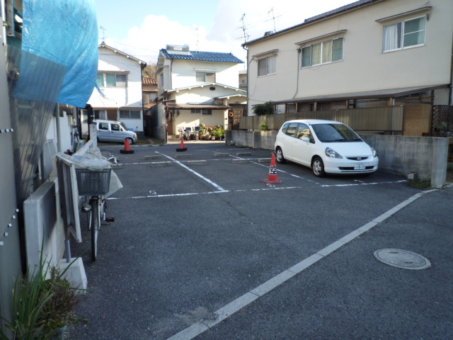 2面道路に面しているので表側はバス通りから、裏側の駐車スペースは